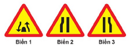 Khi gặp biển nào, người lái xe phải giảm tốc độ, chú ý xe đi ngược chiều, xe đi ở phía đường bị hẹp phải nhường đường cho xe đi ngược chiều?